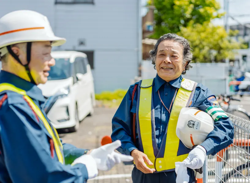 こんにちは。私たち株式会社S-Fourは、東京・神奈川を中心に警備業を行っている会社です。当社の特徴は、隊員の9割が60歳以上であること。業界未経験で定年後に警備のお仕事を始めた方も多数活躍しており、安心して働いていただける会社です。