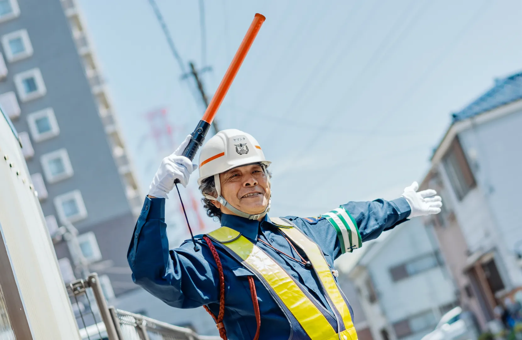 警備の仕事ってキツそう…体力に自信がない…そんな心配はいりません。当社の抱える案件は、「交通量が少ない住宅街」や「ハウスメーカー建築現場での誘導」の他、「マンションの大規模修繕に伴う誘導」など、交通量が少ない現場での車両や歩行者の誘導、お声がけ・ご案内の仕事がほとんどです。通行人の方から挨拶や御礼を言っていただけたり、ちょっとした会話もあったり、地域の方々の安心・安全を守っているやりがいを感じられるお仕事です。